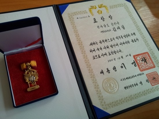 ±èÀçÇÊÀå·Î ´ëÅë·É»ó ¼ö»ó(2011.12.29)