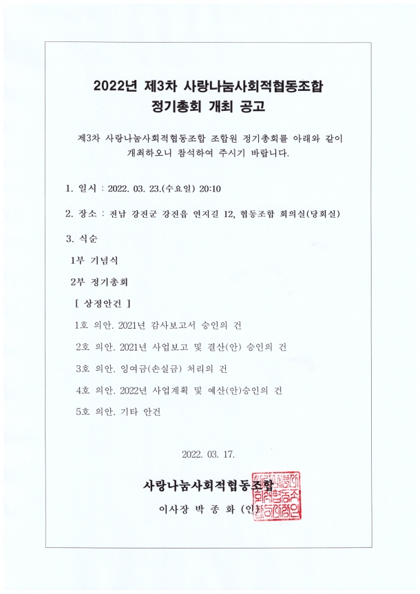 ¡¸Çùµ¿Á¶ÇÕ ±âº»¹ý¡¹ Á¦28Á¶ ¹× ¡¸»ç¶û³ª´®»çȸÀûÇùµ¿Á¶ÇÕ¡¹ Á¤°ü Á¦32¿¡ µû¶ó "»ç¶û³ª´®»çȸÀûÇùµ¿Á¶ÇÕ Á¦4Â÷ Á¤±âÃÑȸ¸¦ ´ÙÀ½°ú °°ÀÌ °³ÃÖÇÕ´Ï´Ù.